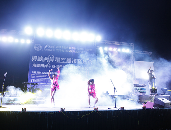 (記者余歡 文/圖)8月15日晚上,2015海峽兩岸車友俱樂部10周年慶典暨星空搖滾音樂會在千野草場激情上演,來自海峽兩岸車友俱樂部的500余名車友和前來千野草場的上萬游客在這里激情狂歡,共同慶祝海峽兩岸車友俱樂部10歲生日。