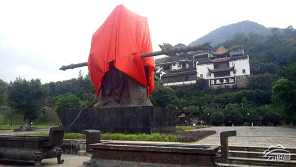 云陽網訊(記者 鄧雅文)10月9日,在張飛廟三國文化廣場上,一塊紅布蓋住了張飛的巨型塑像,這是景區為給三國名將張飛賀壽,精心準備的一份兒“大禮”。