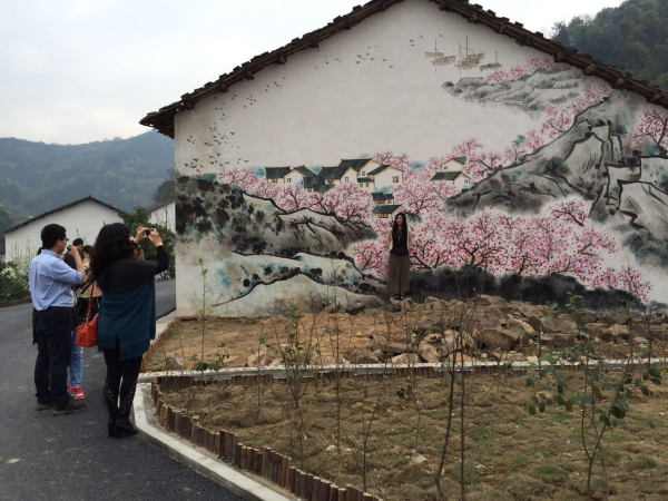今年3月,大冶市舉辦桃花節,沼山鎮桃花村的墻繪驚艷亮相,墻繪以桃花為主題,配合相見的小屋、崇山峻嶺、山里的油菜花,營造與實景相呼應的氣氛。一個普通的豬欄經過整體繪畫,儼然變成了一個藝術品。朵朵殷紅的桃花散落在村子里亦真亦幻,使這個寧靜的小村落增添了無限的美感。華中農業大學耕讀公社的田老師組織親子游來到桃花村,她說,我們當時以為是老百姓自己畫的,還在想太有意思了。要是多一些村子都畫就好了。今年5月份,麻城市舉辦杜鵑花節,當時熊家鋪旅游小鎮已經經過整體立面改造,古樸建筑風格搭配清新的杜鵑花和田園風光,的確讓人眼前一亮。