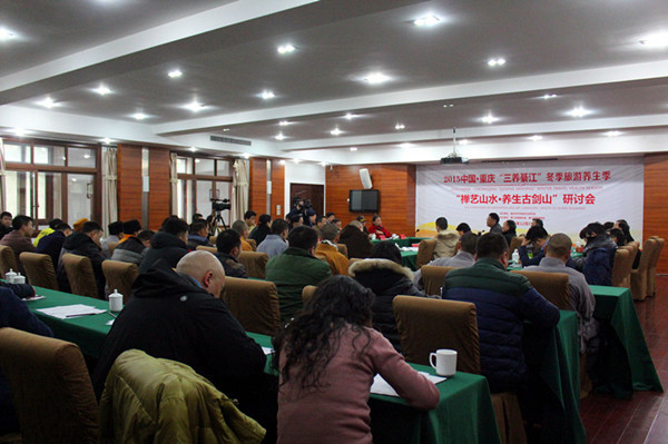 重慶綦江網消息(記者 雷雨霜)12月19日, “禪藝山水·養生古劍山”主題研討會在古劍山旅游度假區舉行。48位來自各領域的專家學者圍繞佛教養生、禪修養生、中醫養生、文化養生四大主題開展演講和研討,并與現場觀眾面對面交流養生心得。